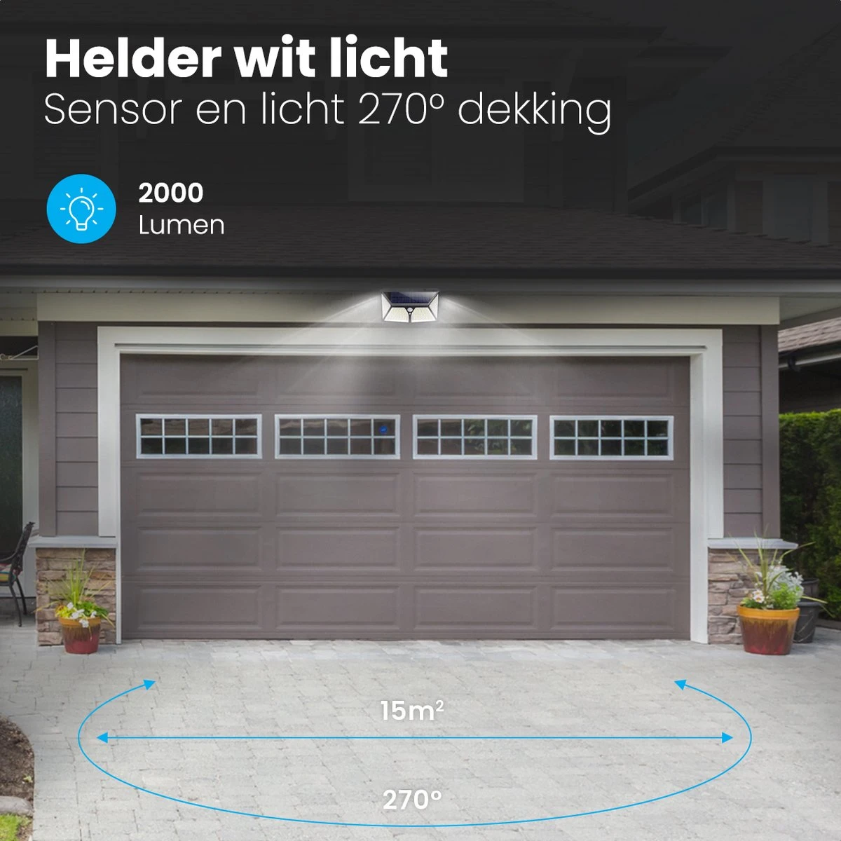 Met de solar lamp van Auronic geniet je van meer licht en een groter lichtbereik. De 180 LED lampen met 2000 Lumen geven bovengemiddeld veel licht af. Kies tussen drie verschillende lichtstanden: 8 uur aan, fel licht en vervolgens uit, fel en vervolgens dim licht. Met een verlichtingshoek van 270° graden verlicht je met één lamp de hele oprit!