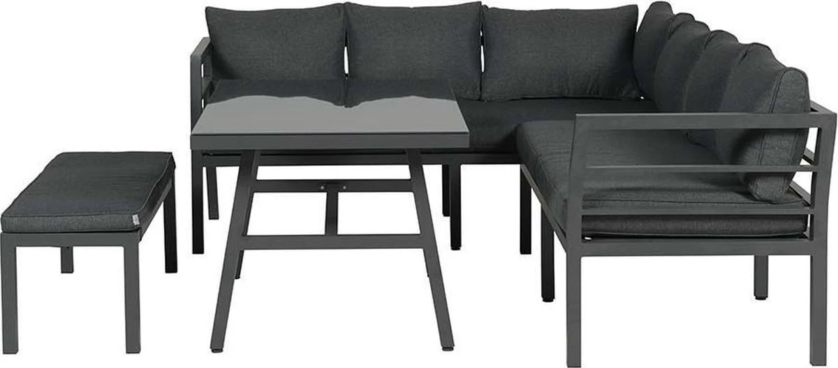 Op zoek naar een stijlvolle loungeset die nรฉt even wat anders is dan anders? Dan is de Blakes lounge dining set van aluminium echt een uitstekende keuze. Een stijlvolle, volledig aluminium loungeset in de kleur grijs met comfortabele lounge kussens. Deze complete loungeset is vervaardigd uit onderhoudsvrij en weerbestendig aluminium met een stevige witte poedercoating.