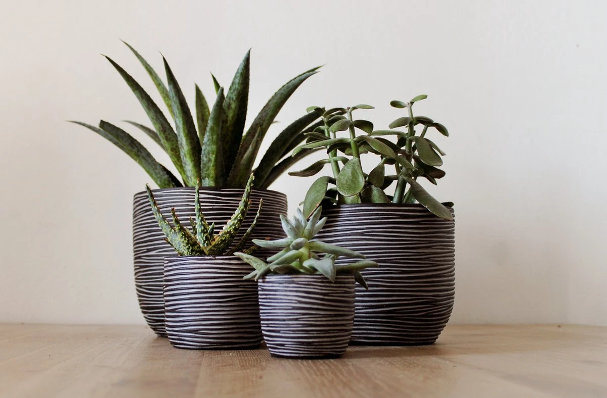 Deze set bevat 4 antracietkleurige potten uit onze all time favourite Nature Rib collectie. Deze set heeft een bijzondere uitstraling dankzij de geribbelde structuur. De textuur van de Rib is geïnspireerd op vlechtwerk met zijn elegante lijnen, waardoor een ritmisch gevoel ontstaat. De antracietkleur combineert natuurlijk en modern zodat deze potten in elk interieur passen.