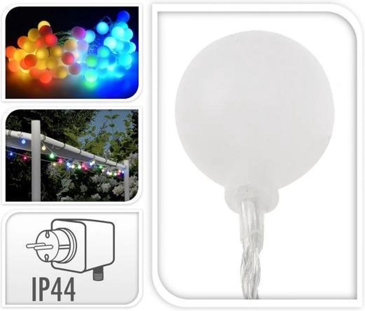 Voorzien van energie-efficiëntieklasse A+ zorgt hij al direct voor een energiebesparing. Ieder lampje is voorzien van een SMD LED. Hij is verder niet dimbaar. Deze LED mulitcolour fesstverlichting werkt gewoon op 230V. De afmetingen zijn 1600 x 25 x 20 mm. De afstand tussen de lampjes is 20 cm. Hij is waterdicht (IP44) en heeft maar liefst 80 lampjes in veel verschillende kleuren, zoals u op de foto’s hierboven goed kunt zien.