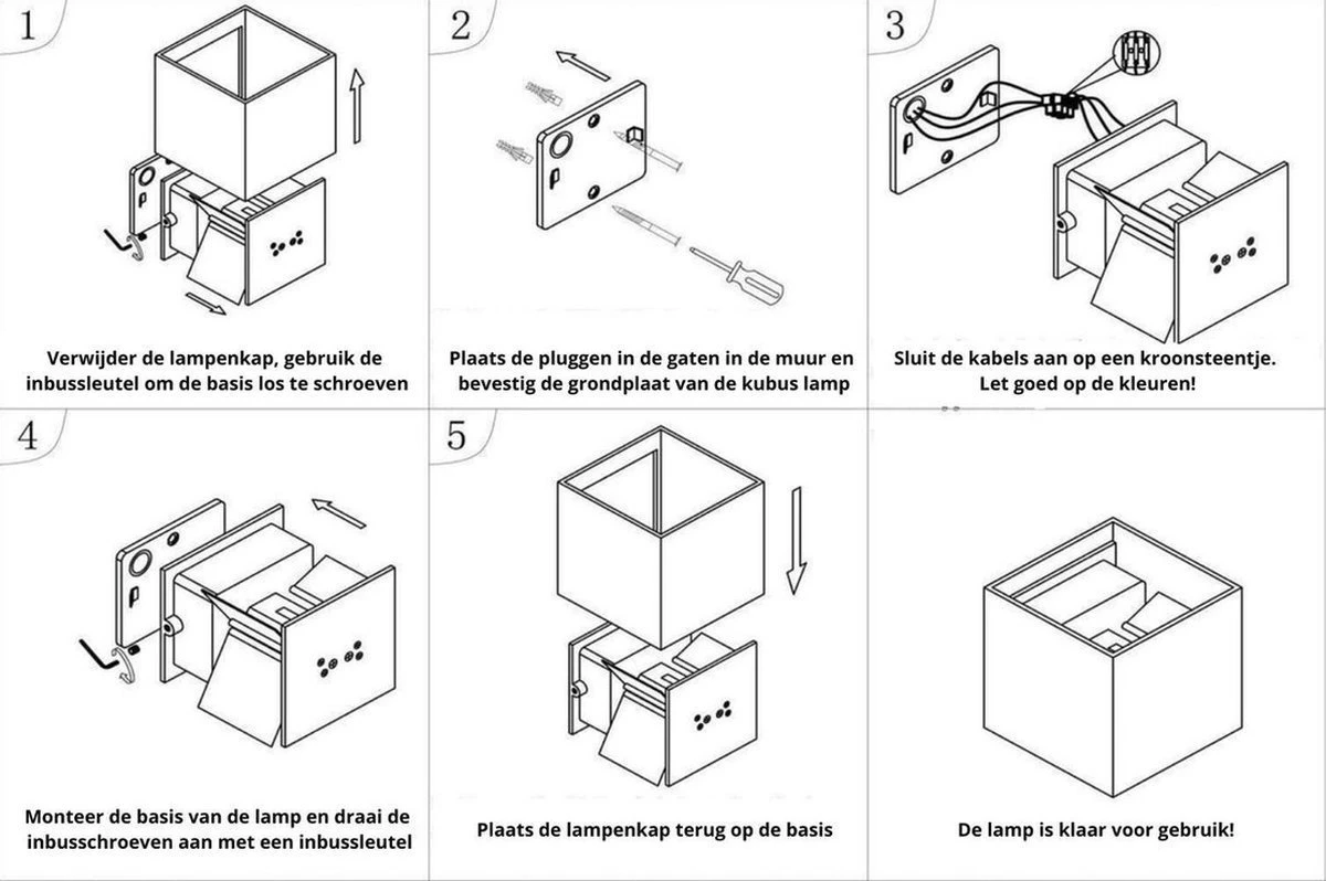 De wandlamp word geleverd inclusief gemonteerd LED lichtbron. Dit houd in dat geen extra lamp hoeft aan te schaffen en de wandlamp al klaar is om simpel te monteren. Het enige wat u hoeft te doen is de lamp op de hangen en aan te sluiten op 230 volt netstroom. In de handleiding vind u uitgebreidere informatie.