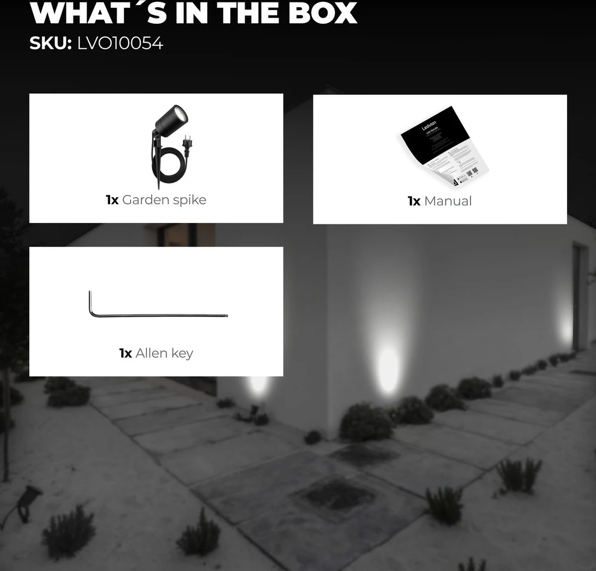 De prikspot buiten wordt geleverd met een netsnoer en kabel van circa 200cm. Het wordt aangeraden om een IP68 kabelverbinder mee te bestellen. Hiermee kun prikspot veilig worden aangesloten. Wanneer je de prikspot set compleet wilt maken dan raden wij het aan om een GU10 spot mee te bestellen. Hiermee zorg je ervoor dat er ook daadwerkelijk licht uit de prikspot gaat komen. Eenmaal een GU10 spot mee besteld dan is de prikspot set compleet en heb je alles in huis om de prikspot tuin te plaatsen en te laten schijnen.