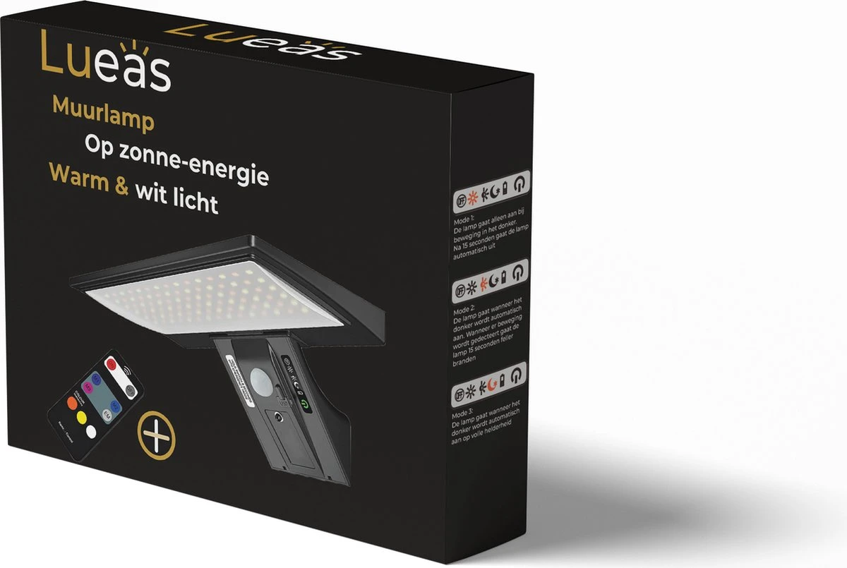 De wandlamp met bewegingssensor werkt via een ingebouwde accu en vereist dus geen bekabeling. De accu wordt opgeladen door middel van een zonnepaneel wat zich aan de bovenkant van de ledlamp bevindt. Overdag laadt de accu op. Als de bewegingssensor in de donker beweging detecteert wordt het felle LED-licht geactiveerd. De lamp zal na verloop van tijd automatisch uit gaan als hij geen beweging meer detecteert. Daarnaast kan je de lamp ook continue laten branden.