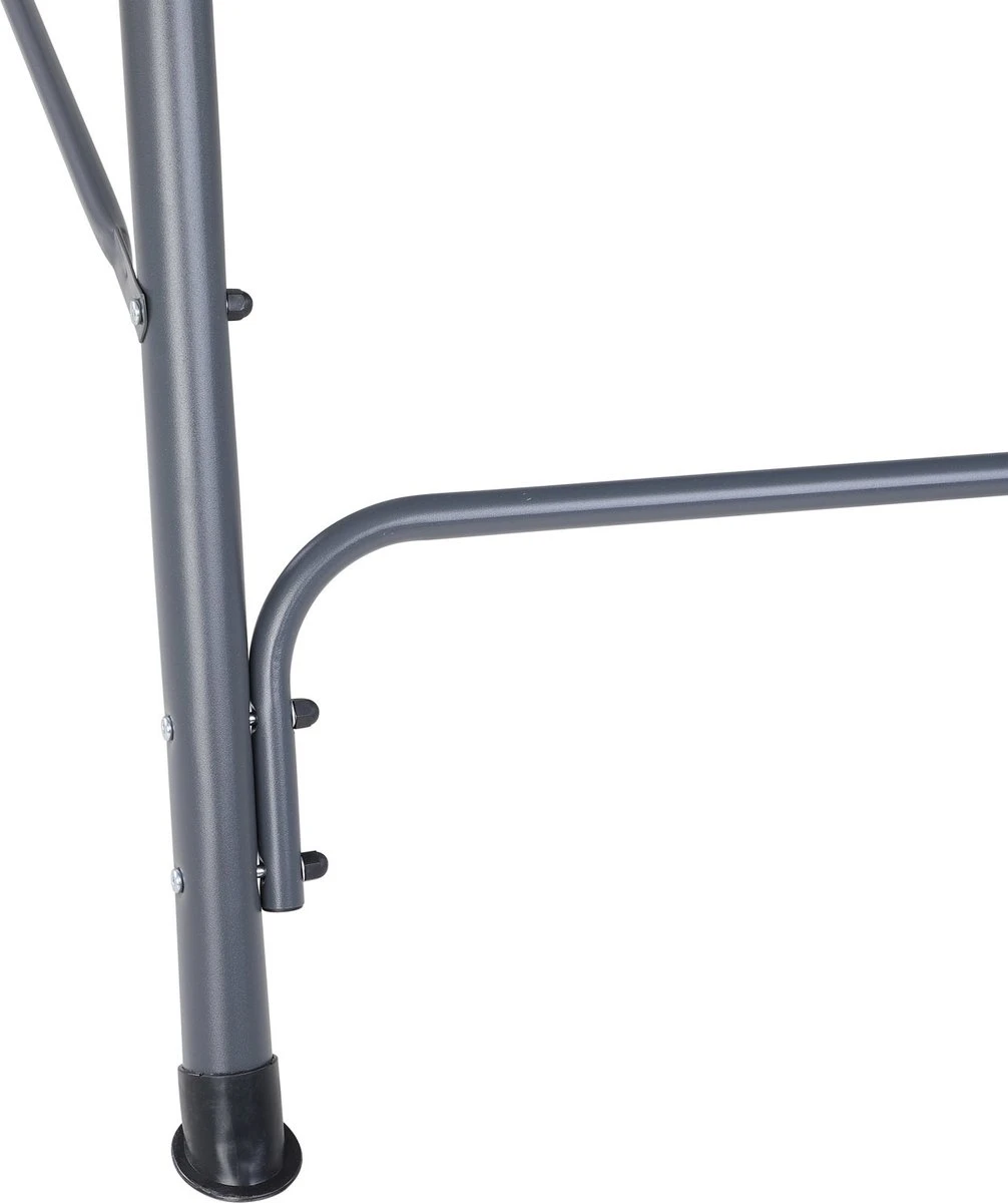 Het frame van de schommel is gemaakt van hoogwaardig, stabiel en gepoedercoat staal, dat door de poedercoating wordt beschermd tegen krassen en corrosie. De h-vorm van de poten zorgt voor nog meer stabiliteit en stabiliteit.