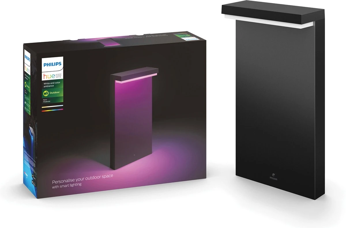 De Philips Hue Nyro White and color ambiance sokkellamp verlicht je tuinpad of oprit in alle kleuren van de regenboog. De LED-lamp geeft namelijk 16 miljoen kleuren en 50.000 wittinten. De zwarte sokkellamp werpt zijn licht rechtstreeks op de grond en dat geeft een subtiel en mooi lichteffect. Als je de slimme lamp koppelt aan je Philips Hue Bridge kun je elke gewenste kleur van je tuinpad voorprogrammeren. Je kunt de lampen dan bedienen met de Hue app via smartphone of tablet, ook als je niet thuis bent. En verder kun je gebruik maken van slimme verlichtingsmogelijkheden zoals timers en geofencing, waardoor je lampen automatisch gaan branden als je in de buurt komt. De Hue Nyro heeft bovendien een IP44 waterdicht beschermingsniveau.