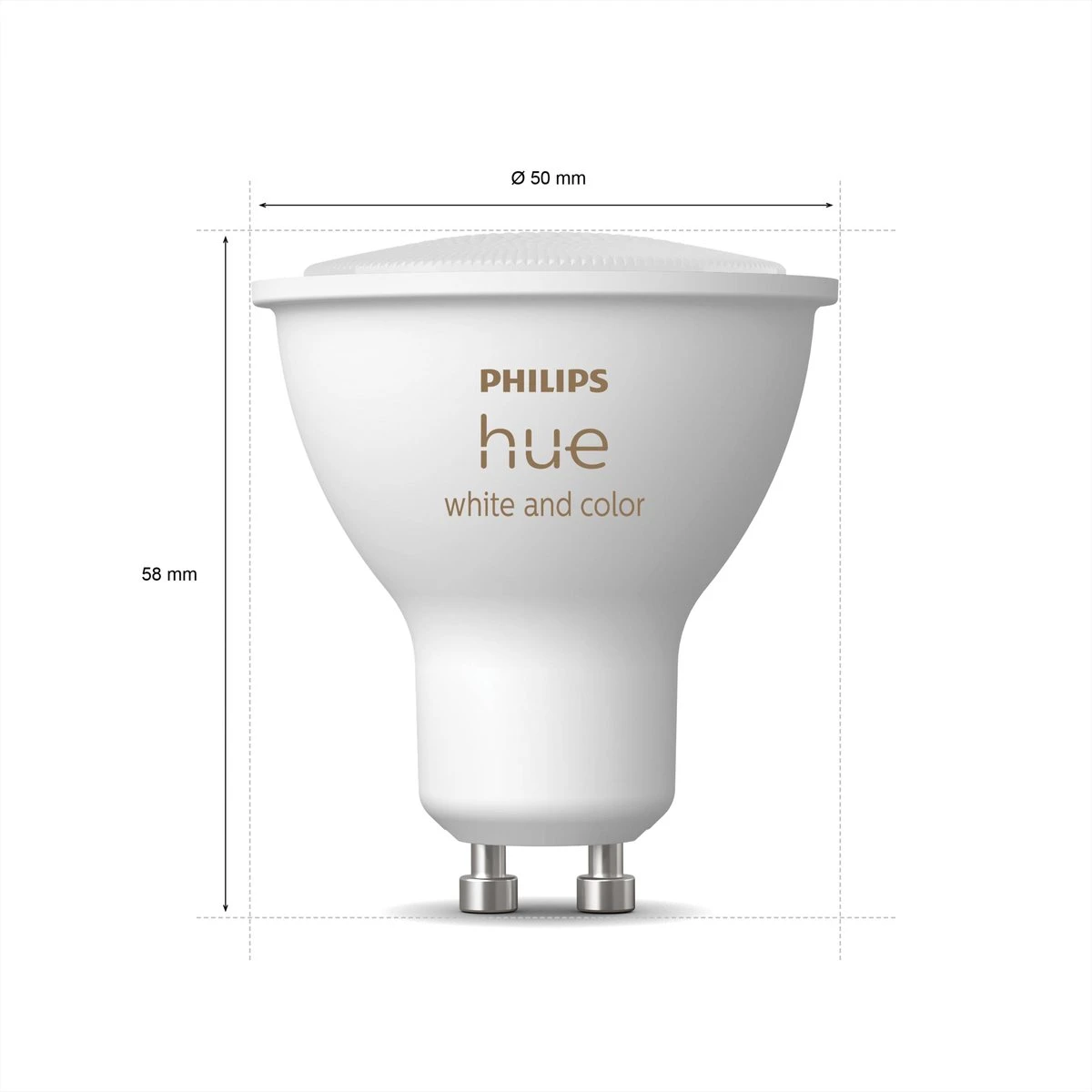 Haal een echte sfeermaker in huis met de Philips Hue White and color ambiance LED spot met GU10 fitting. Je hebt keuze uit 16 miljoen prachtige kleuren en 50.000 wittinten om voor elk moment de juiste sfeer te creëren. Zo ontspan je met warmwit licht en gebruik je koelwit licht voor extra focus.