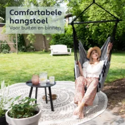 Vita5 XXL Hangstoel | Binnen&Buiten Hangnest | Incl. 2 Kussens En Boekenvak | Volwassenen&Kinderen | Hangmatstoel Tot 225kg | Grijs