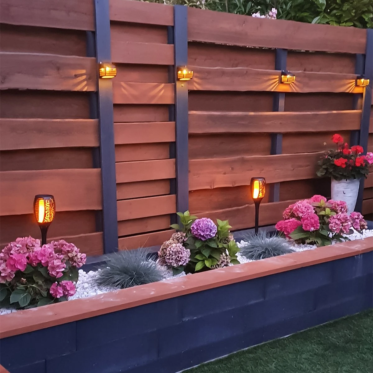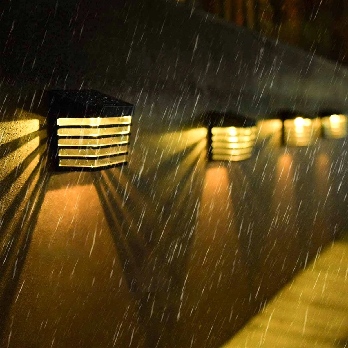 Solar wandlamp Stripe warm wit – zwarte buitenlamp – Set van 4
