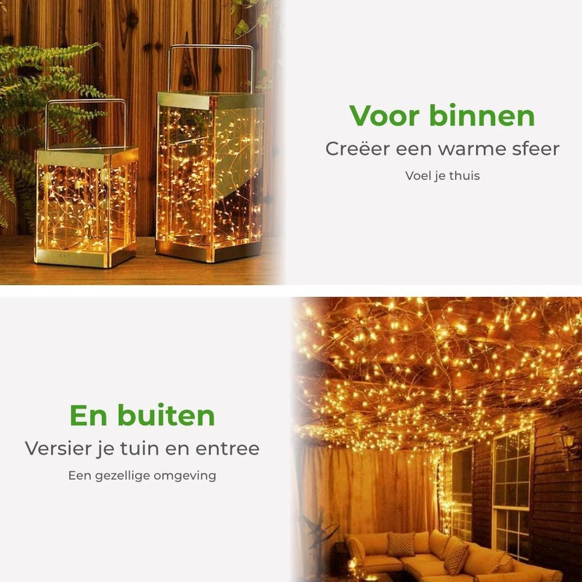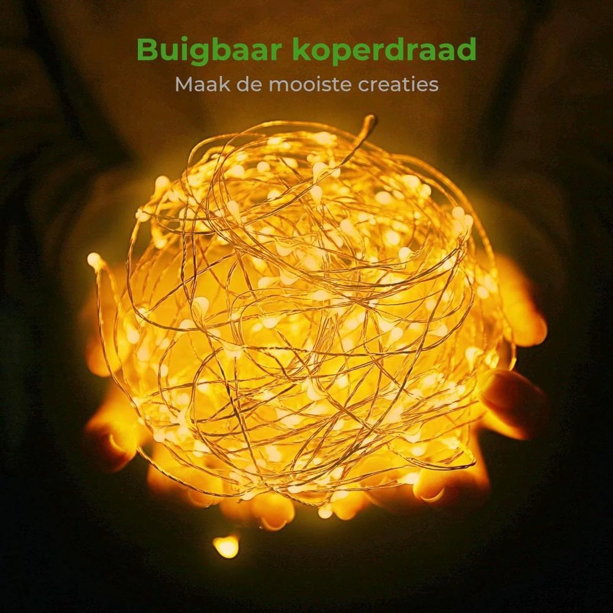 Sfeerverlichting voor buiten óf binnen, jij kiest zelf! Deze fairy lights zijn uniek in zijn soort en extra warm ten opzichte van andere kleuren warm wit. Het 10 meter lange koperen LED lichtsnoer en de batterijdoos zijn beiden waterdicht en dus geschikt voor binnen en buiten.